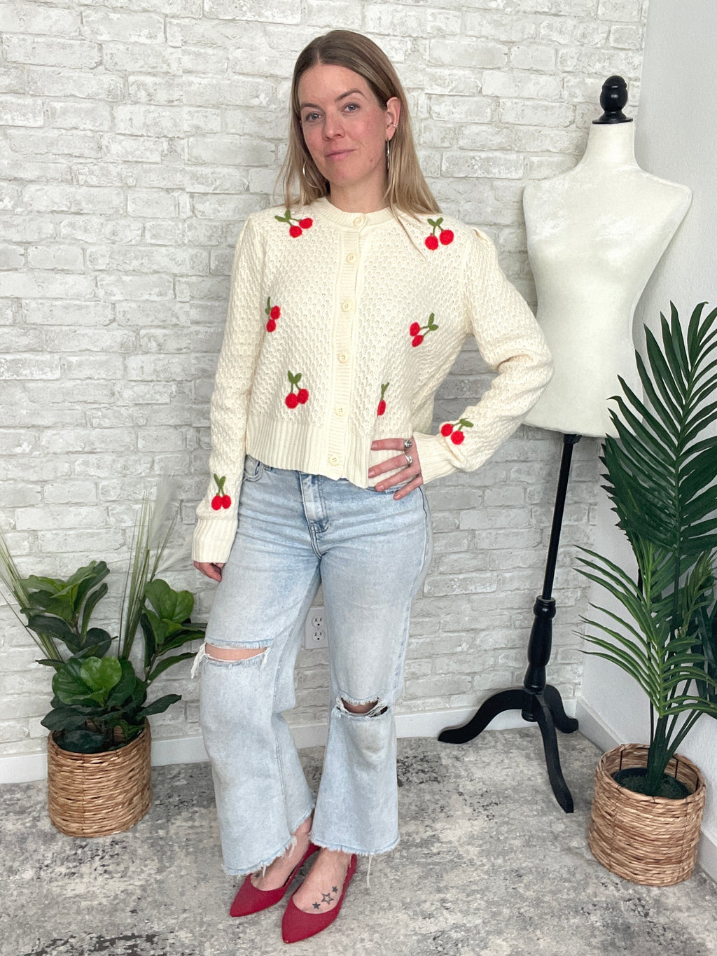 Vintage Cherry Cola Cardigan Cream
