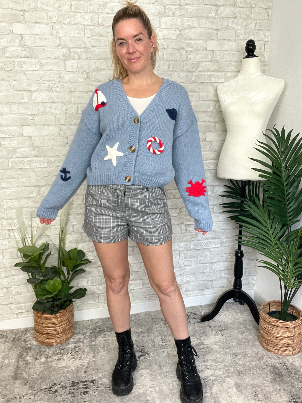 Zelda Zip Up Knit Cardigan - Blue Combo
