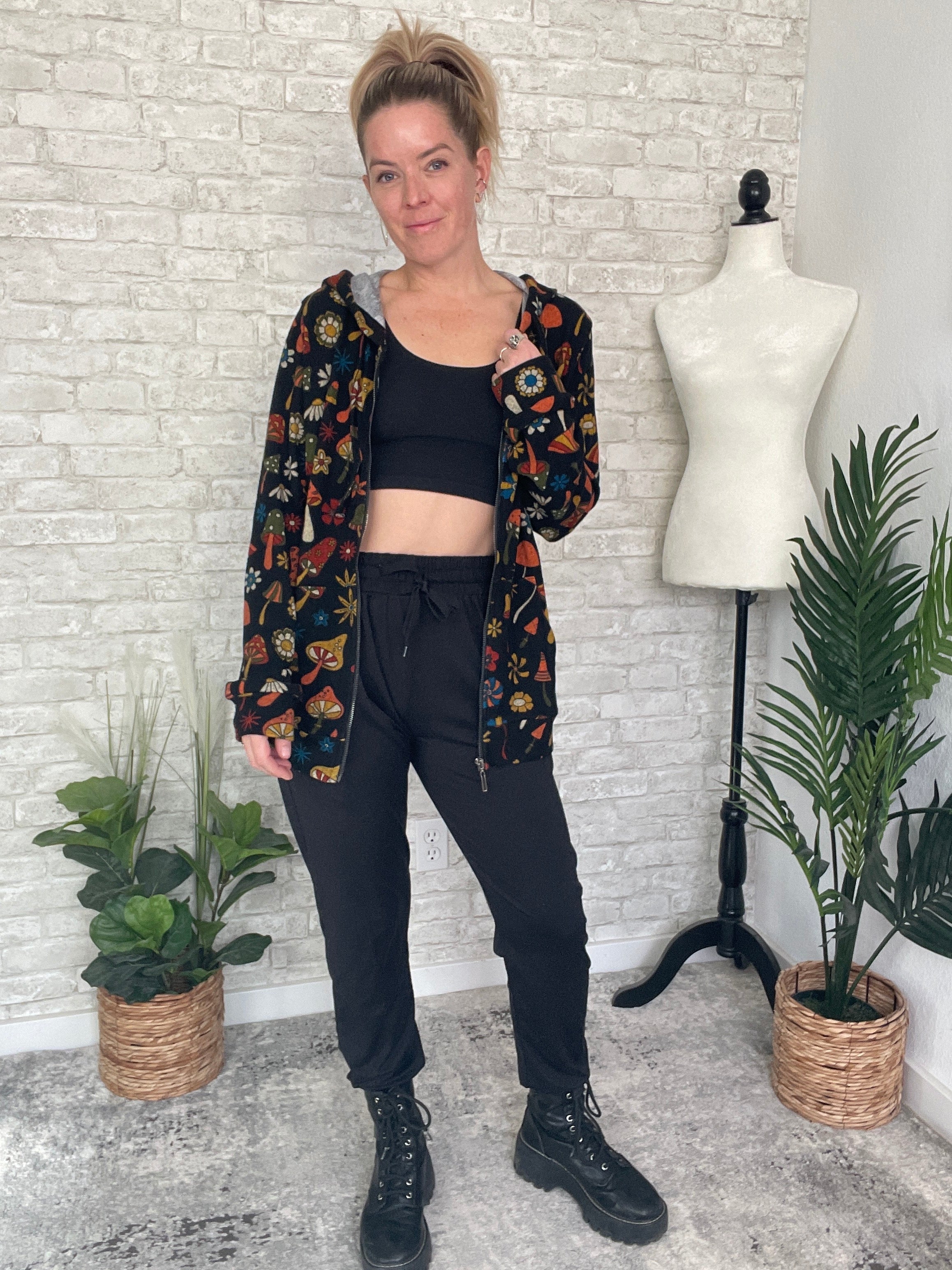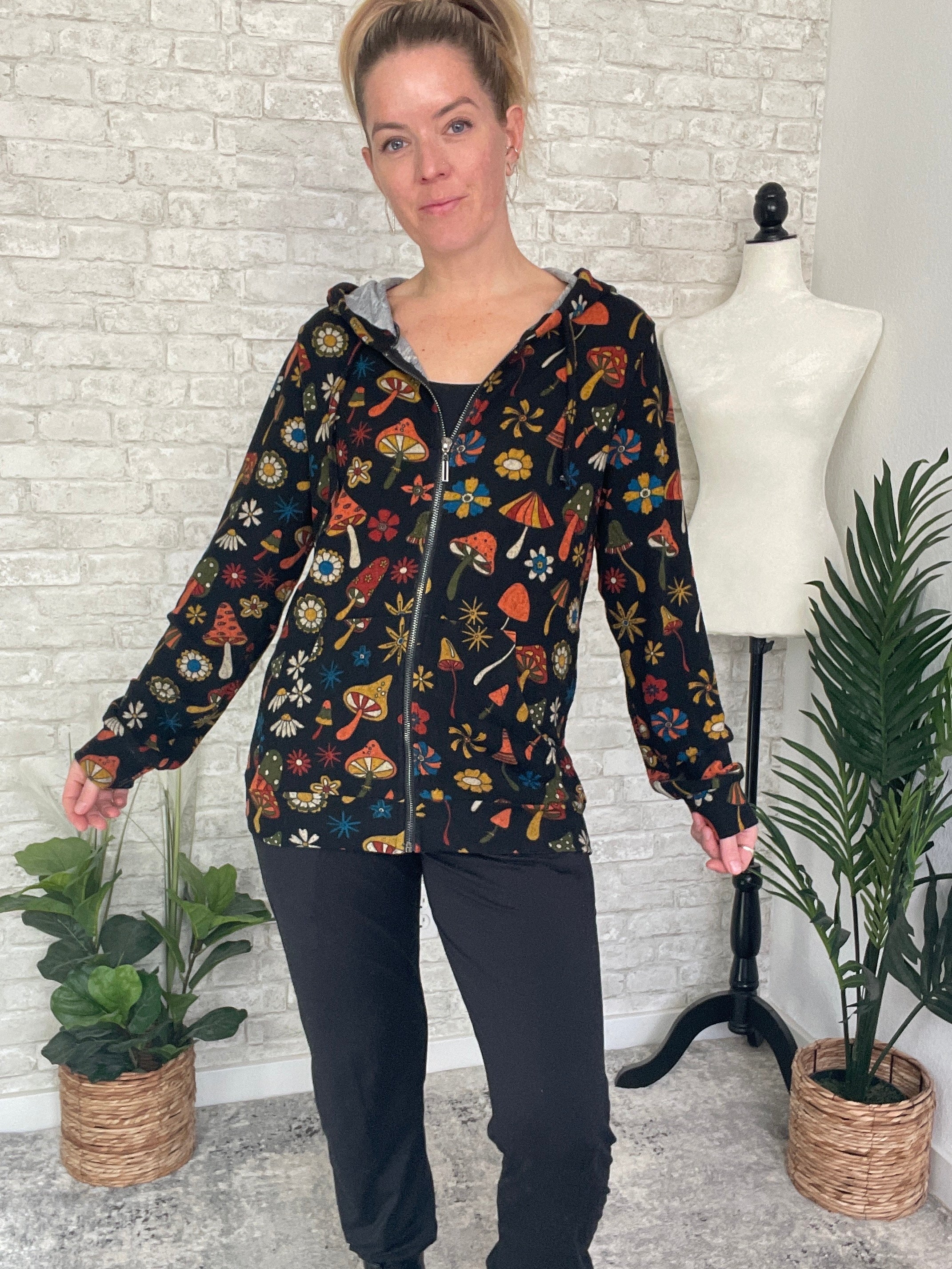 Adrienne is wearing size small. (Model measurements; 32B bust + 28.5" waist + 39" hip)