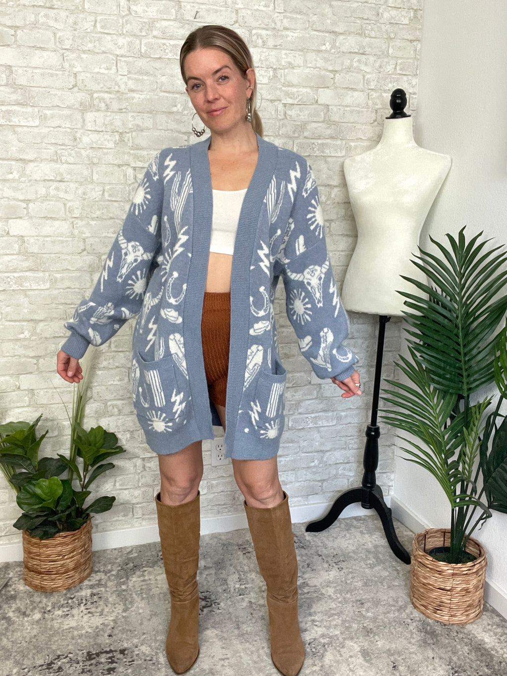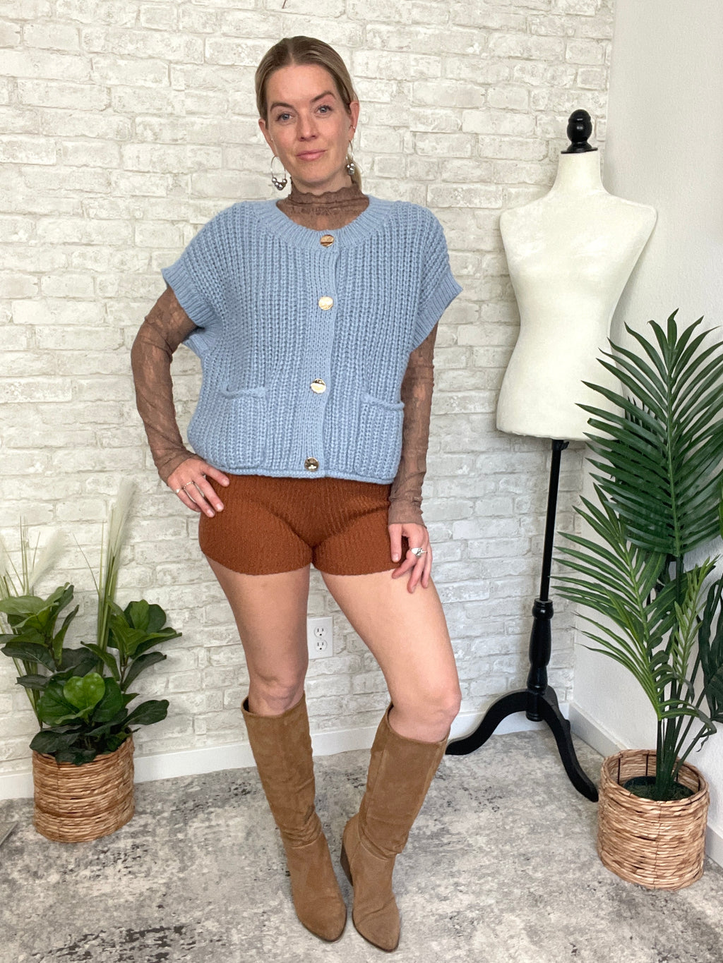 Lanny Short Sleeve Button-Up Cardigan Blue