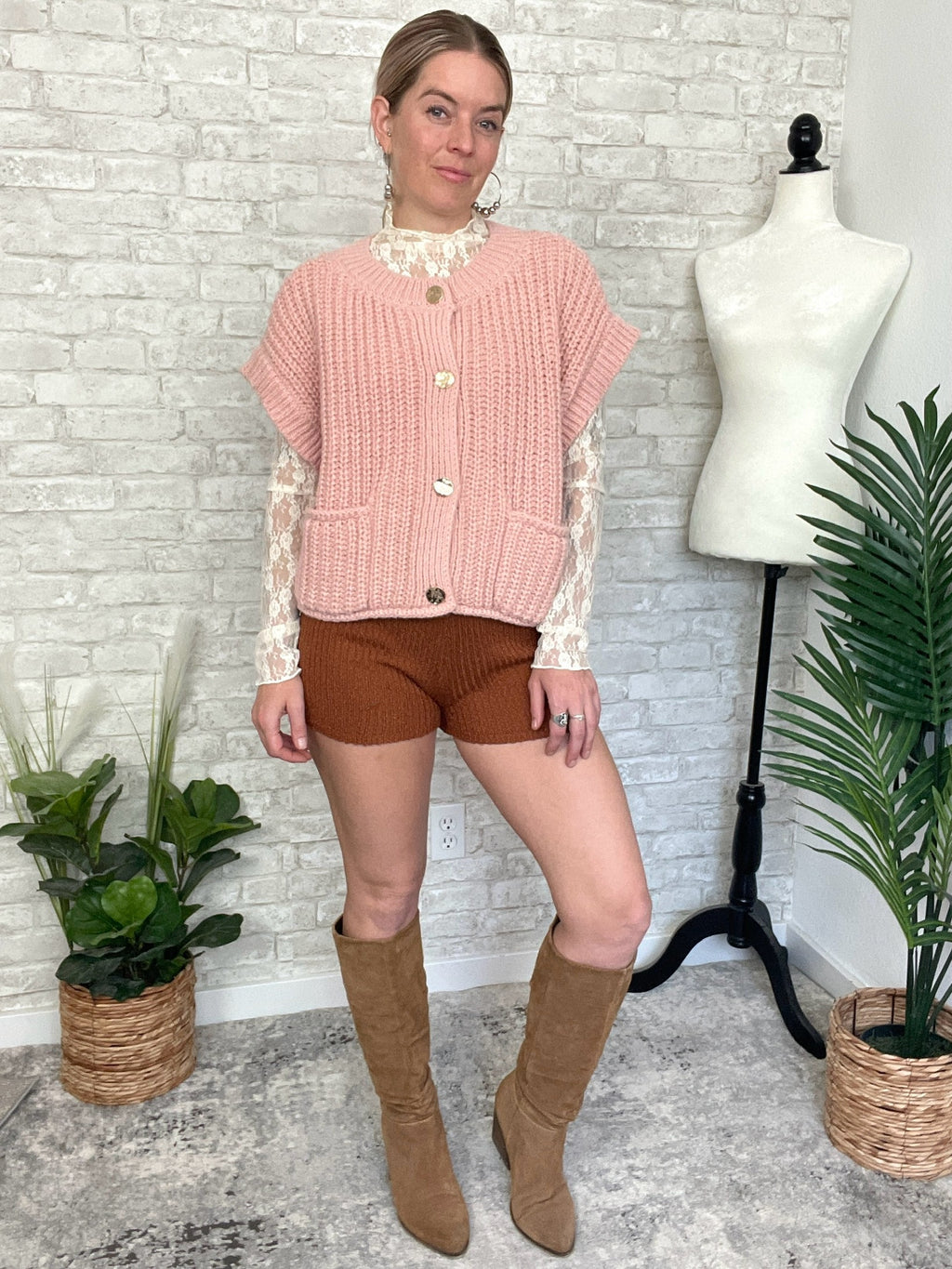 Lanny Short Sleeve Button-Up Cardigan Pink