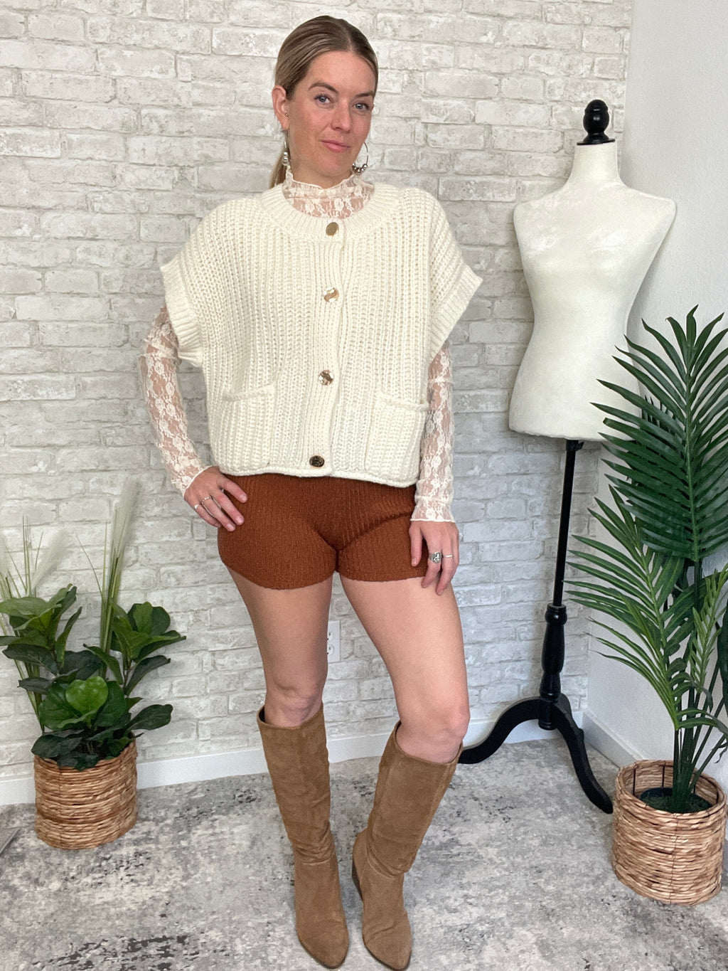 Lanny Short Sleeve Button-Up Cardigan Cream