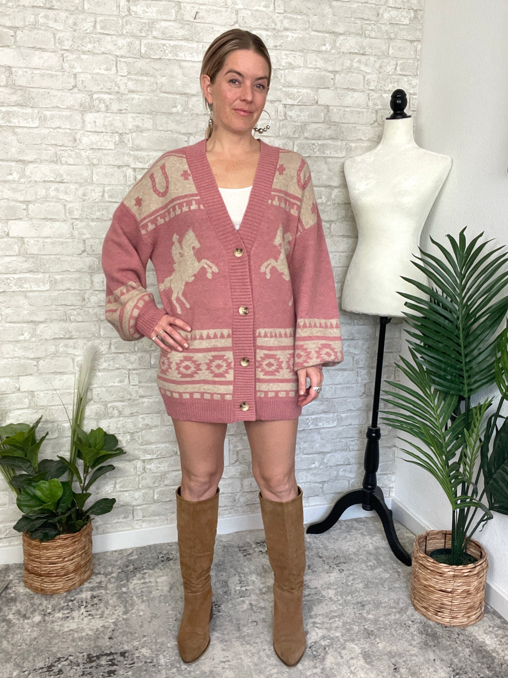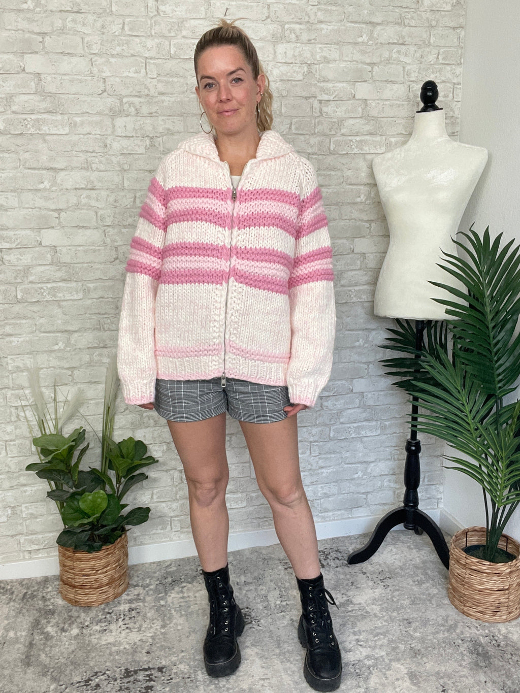 Zelda Zip Up Knit Cardigan - Pink Combo