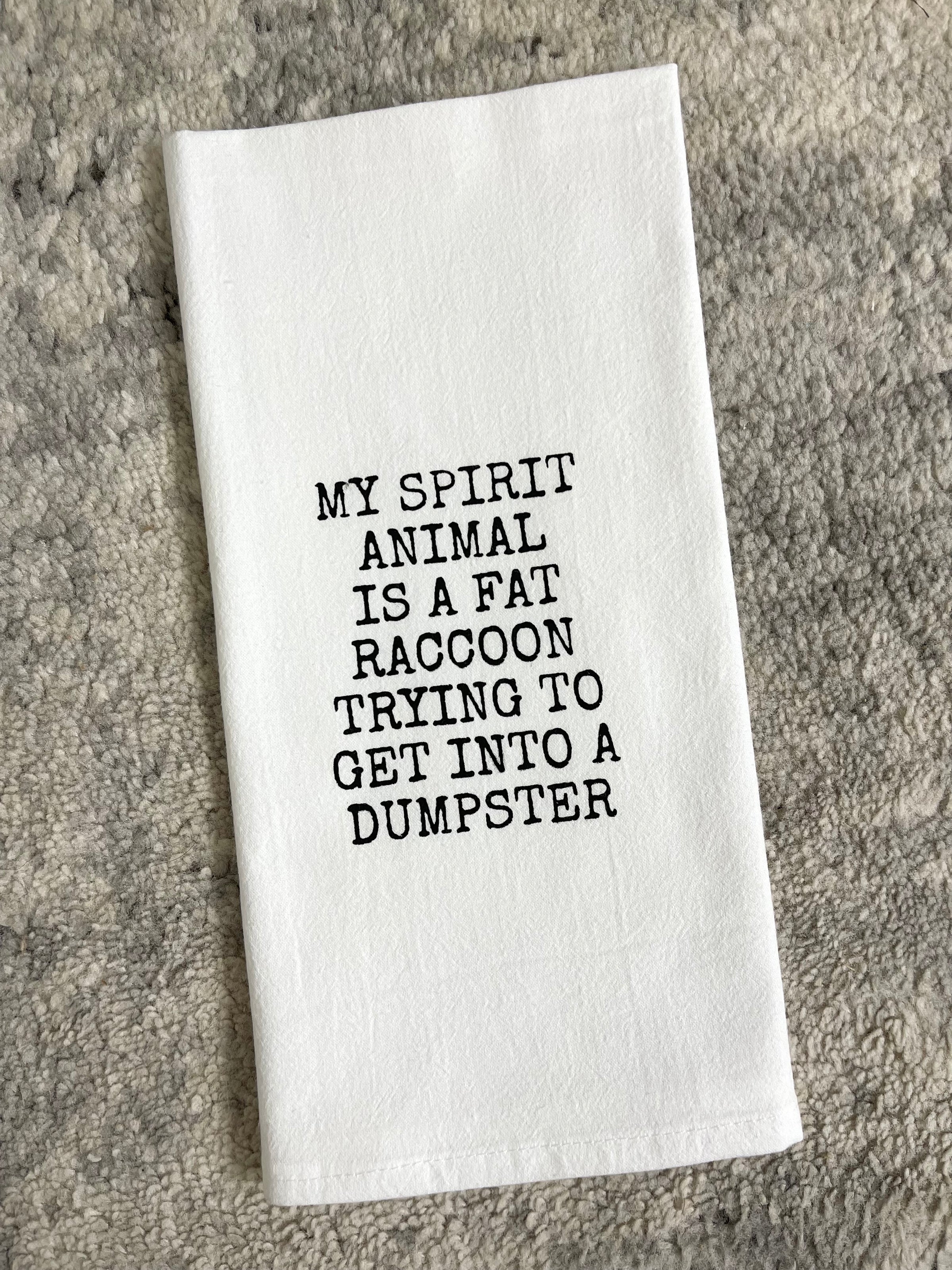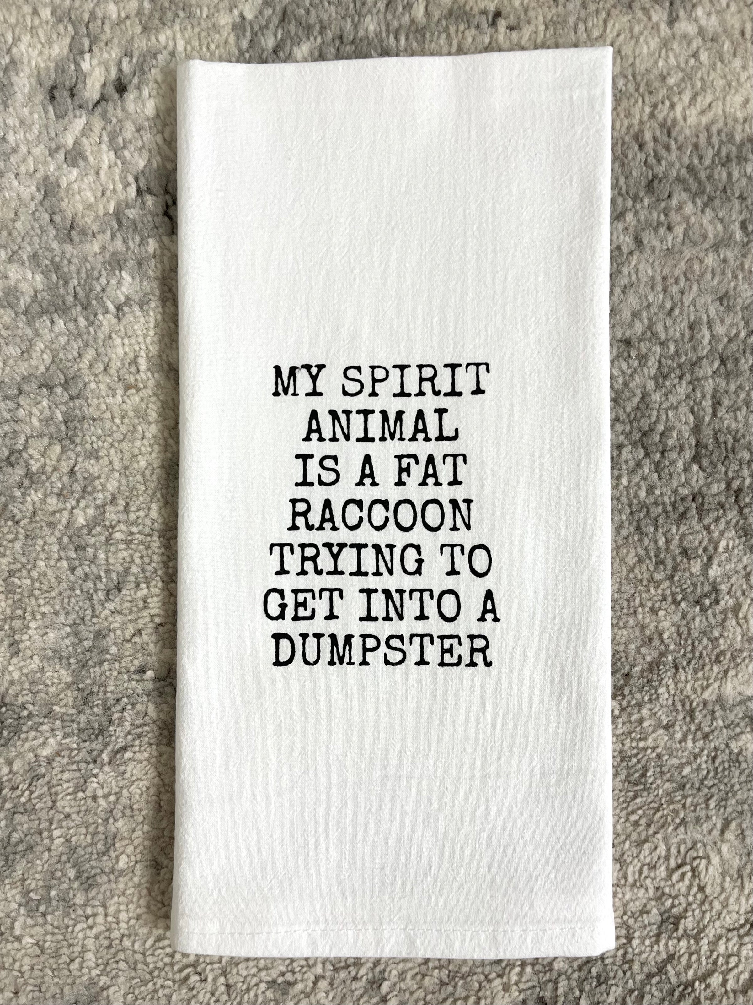 These sassy dish towels are a great and hilarious addition to anyones kitchen! "My spirit animal is a fat raccoon trying to get into a dumpster"