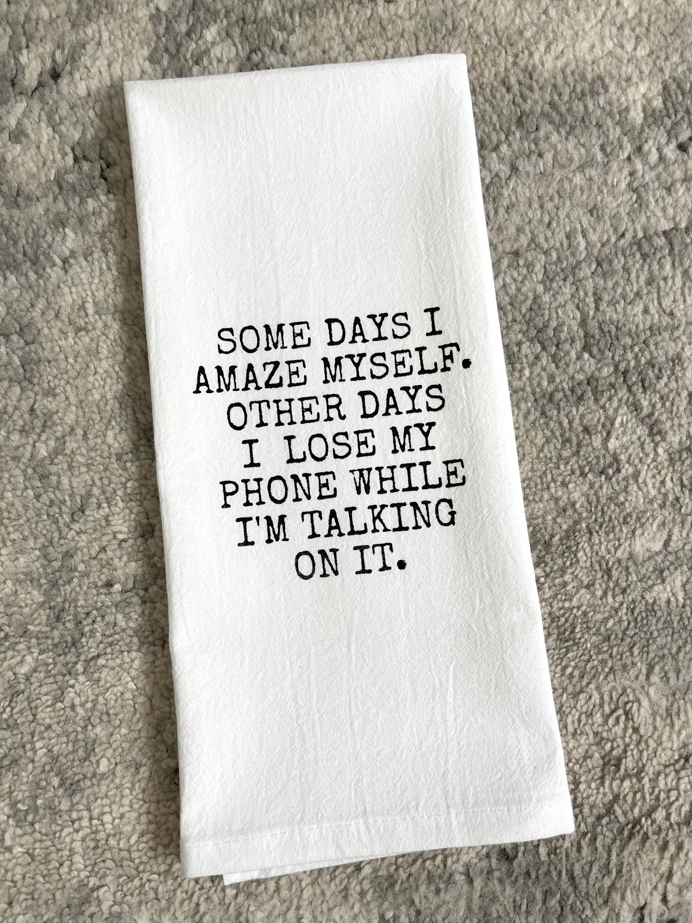 These sassy dish towels are a great and hilarious addition to anyones kitchen! "Some days I amaze myself. Other days I lose my phone while I'm talking on it."
