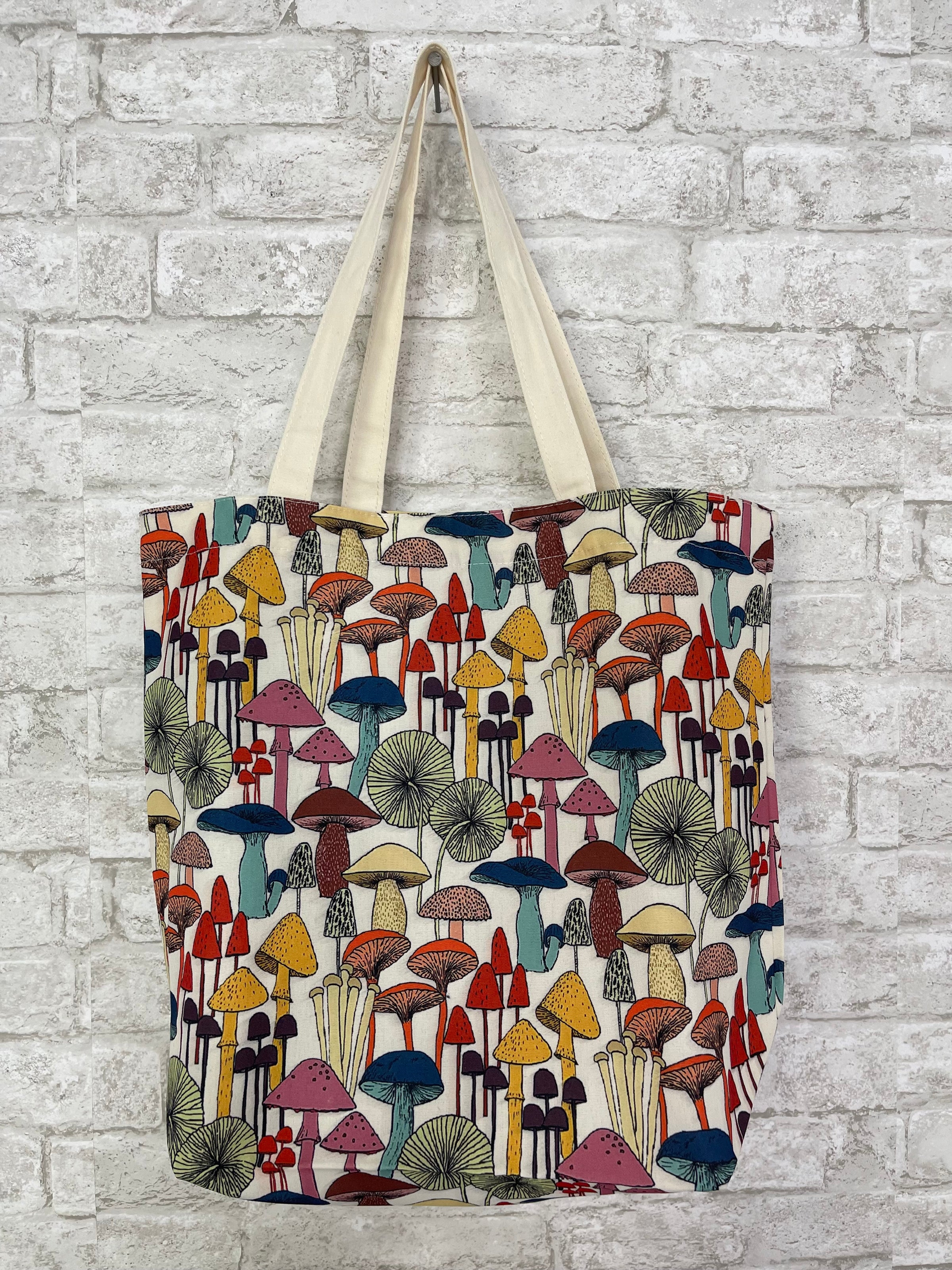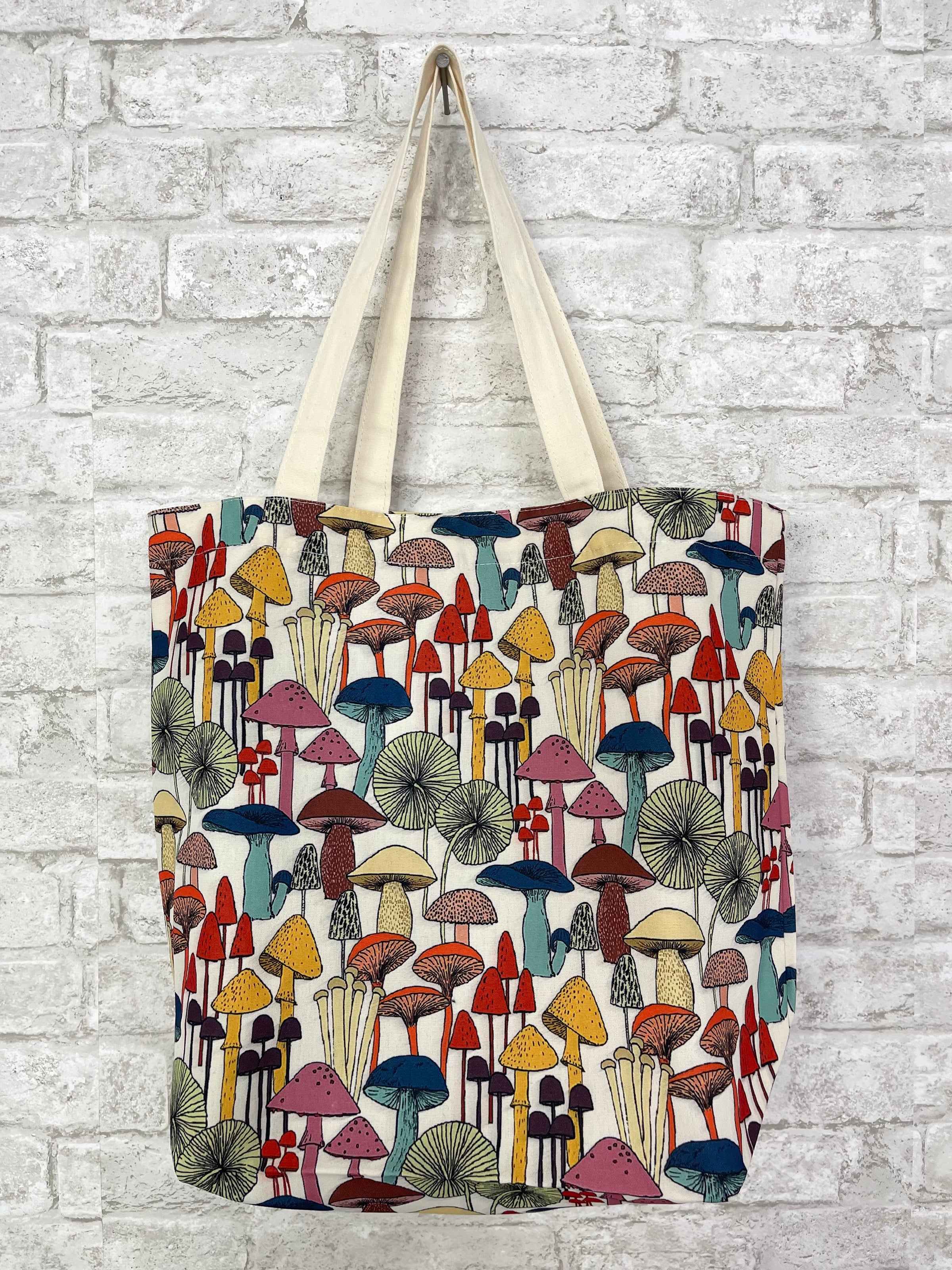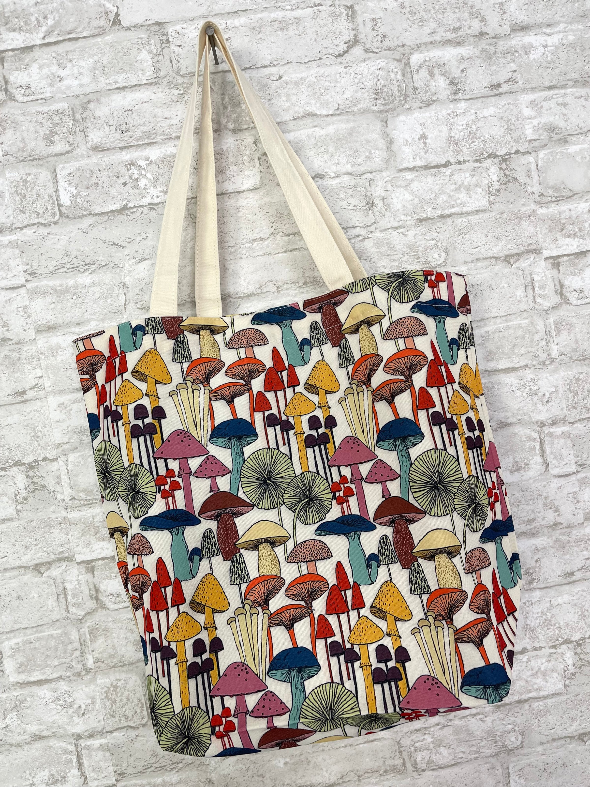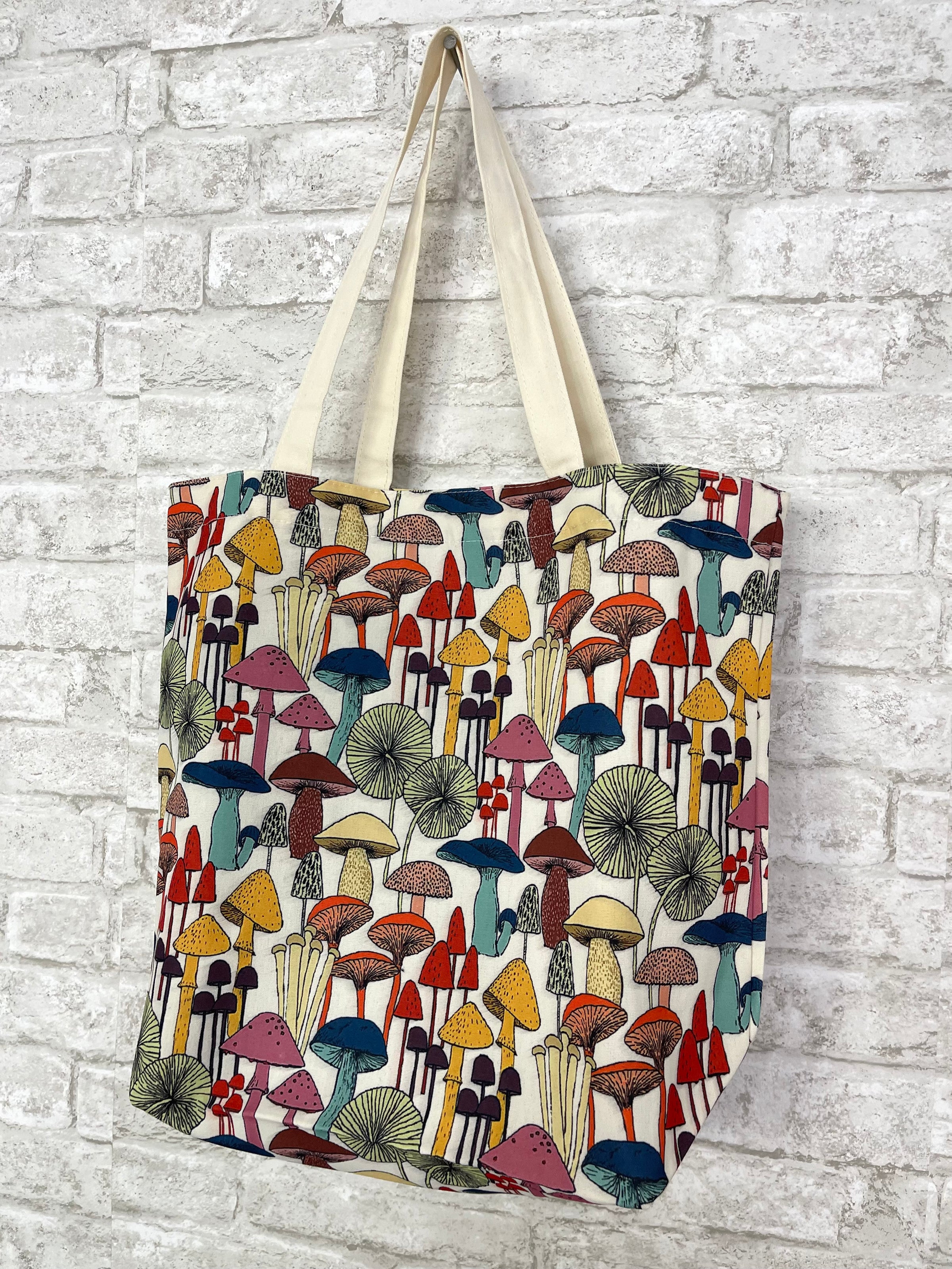 *Rainbow hippy mushroom canvas tote bag - super colorful print
