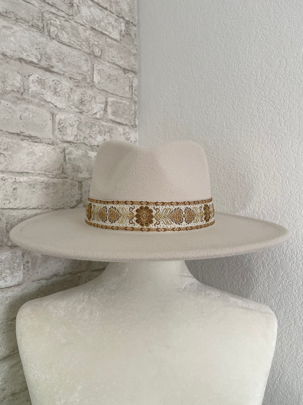 Willa 2.0 Gold Flower Band Ivory Wide Brim