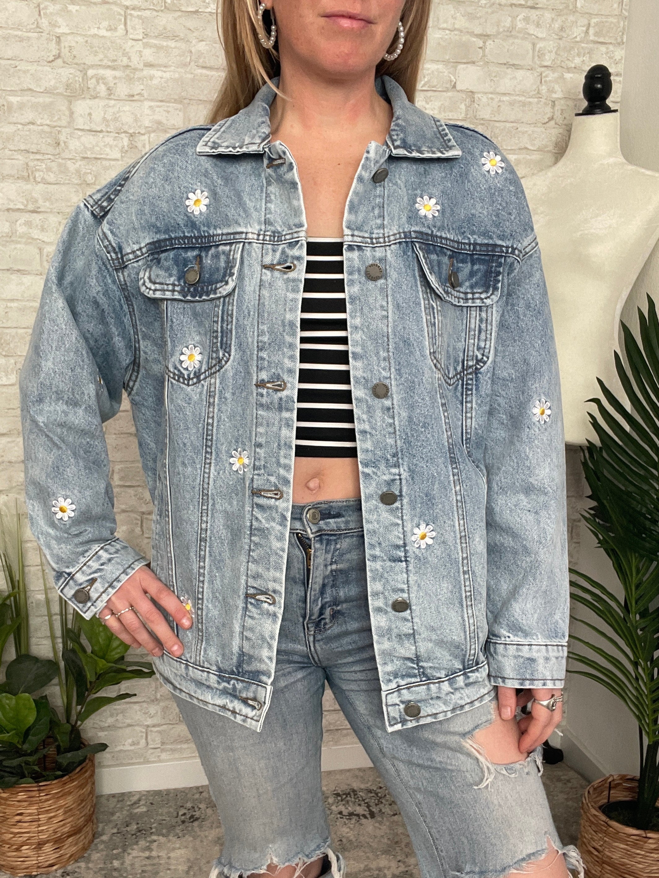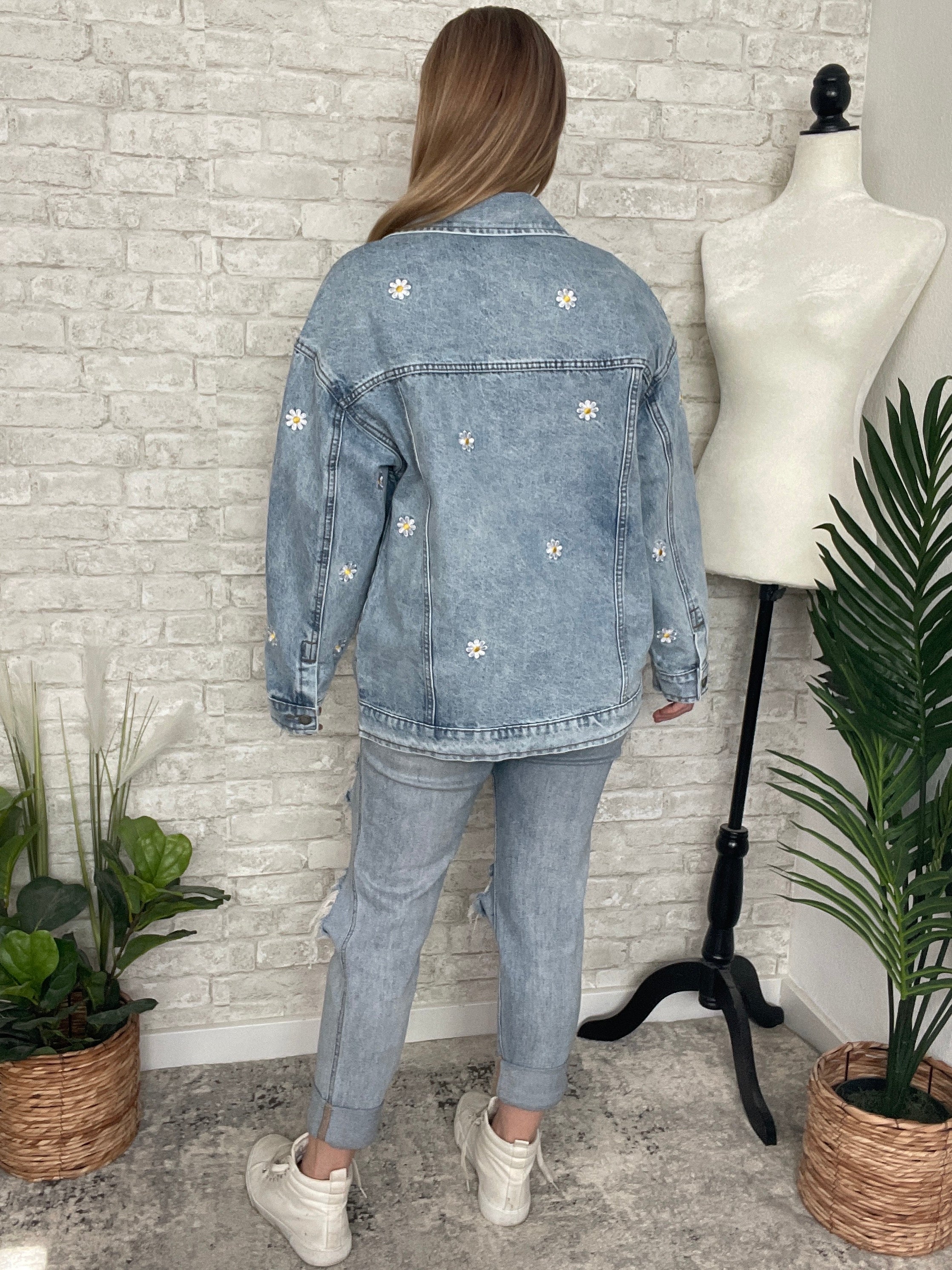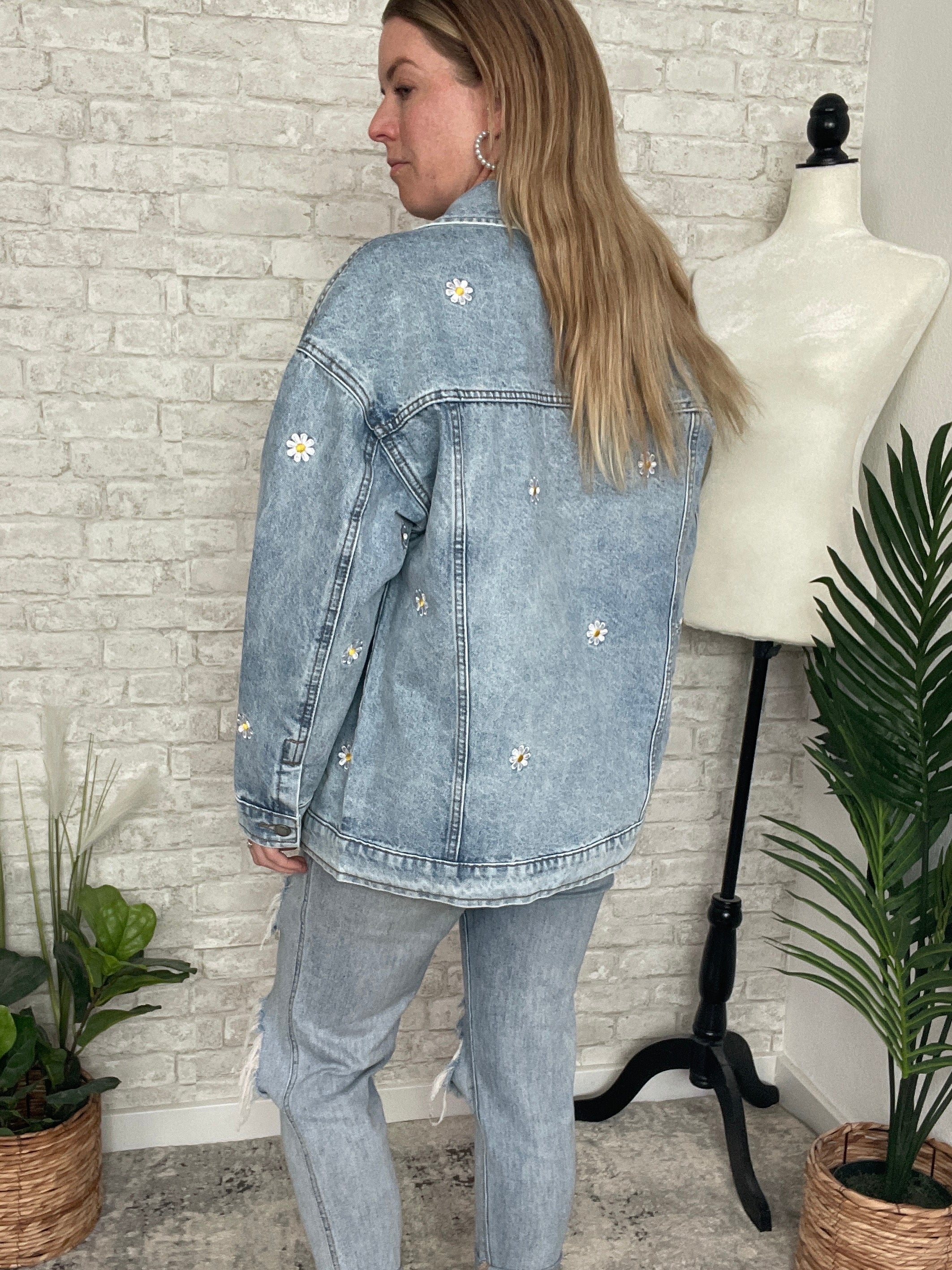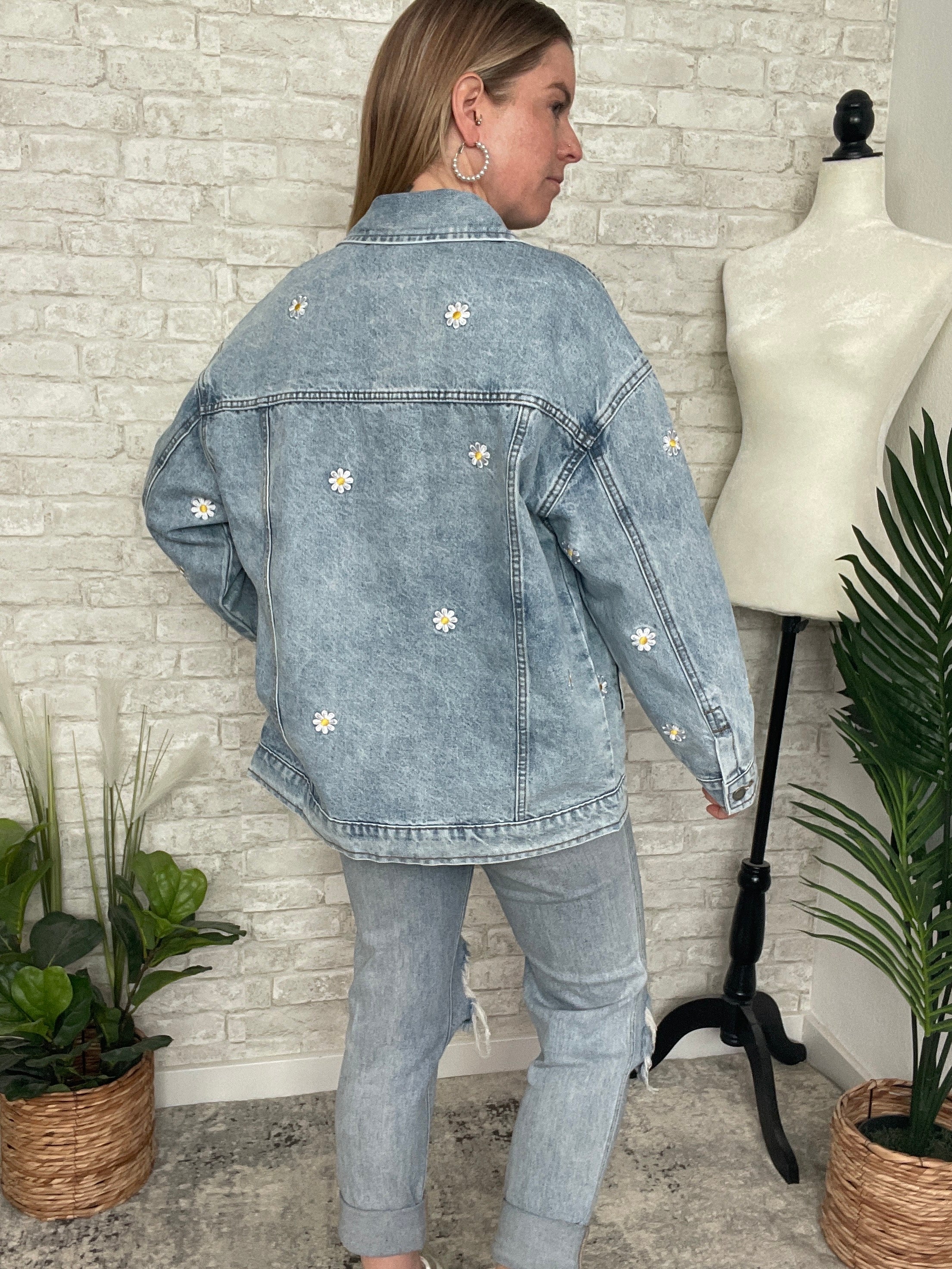 Pick A Daisy Embroidered Jacket Denim