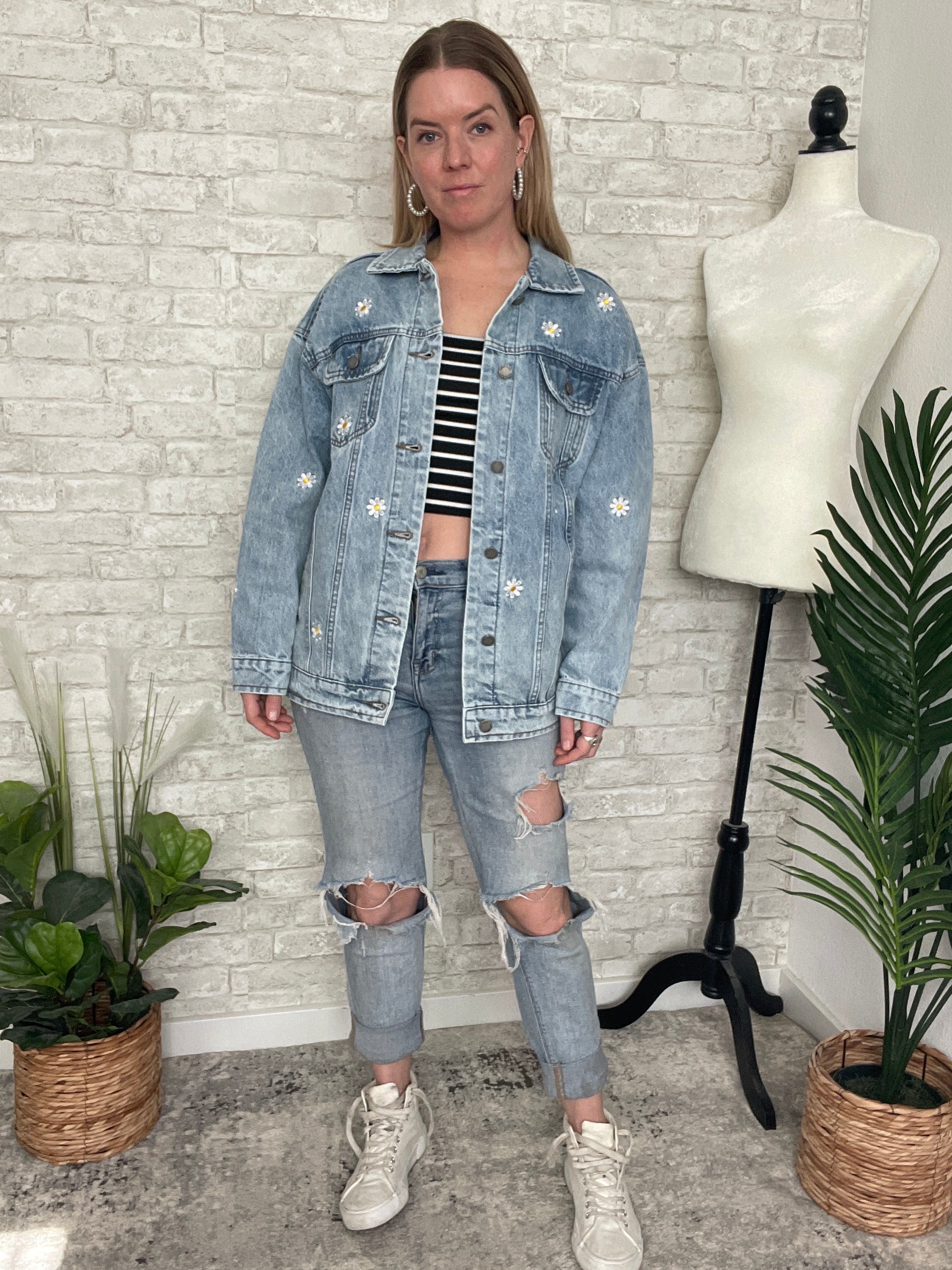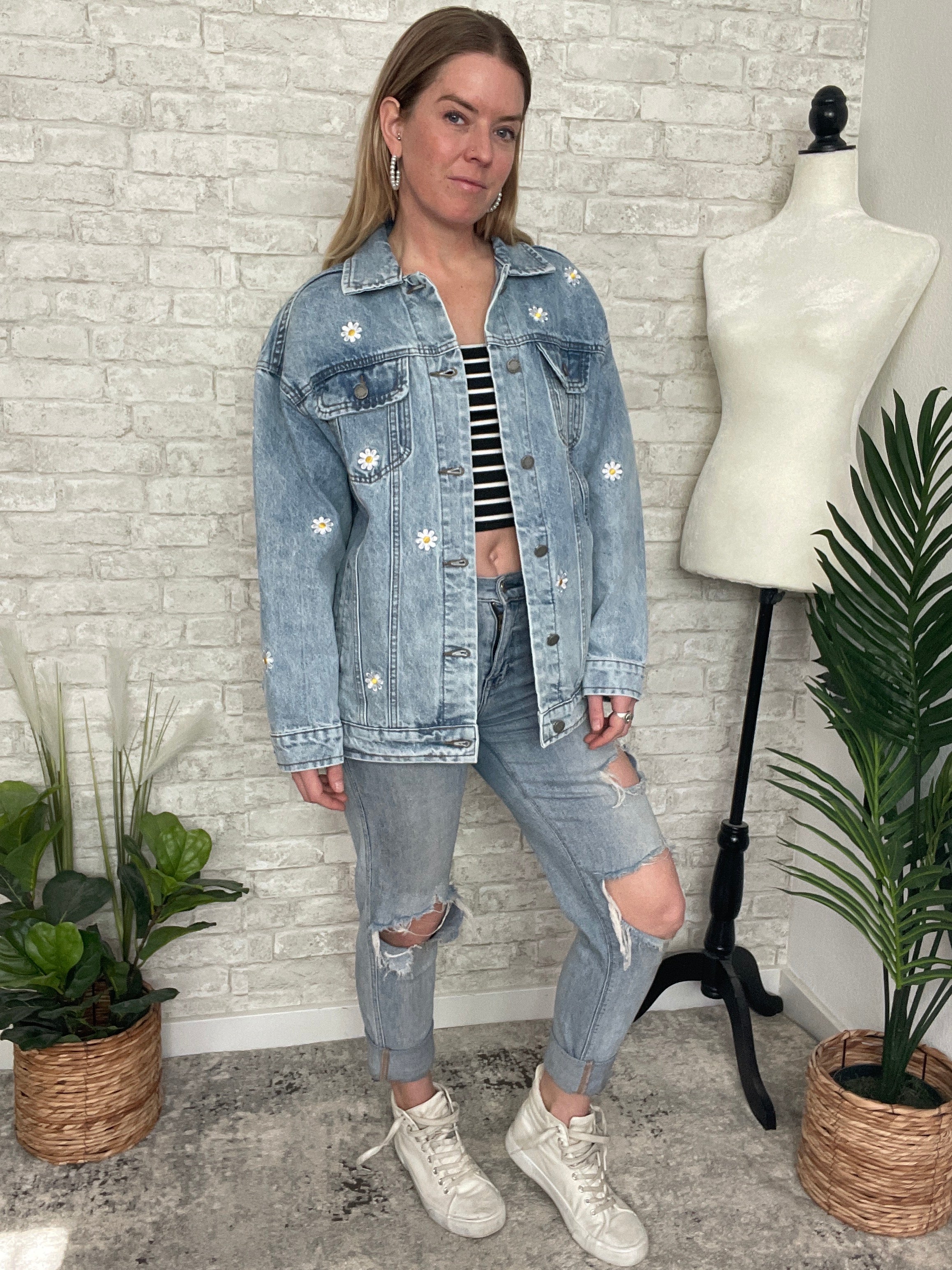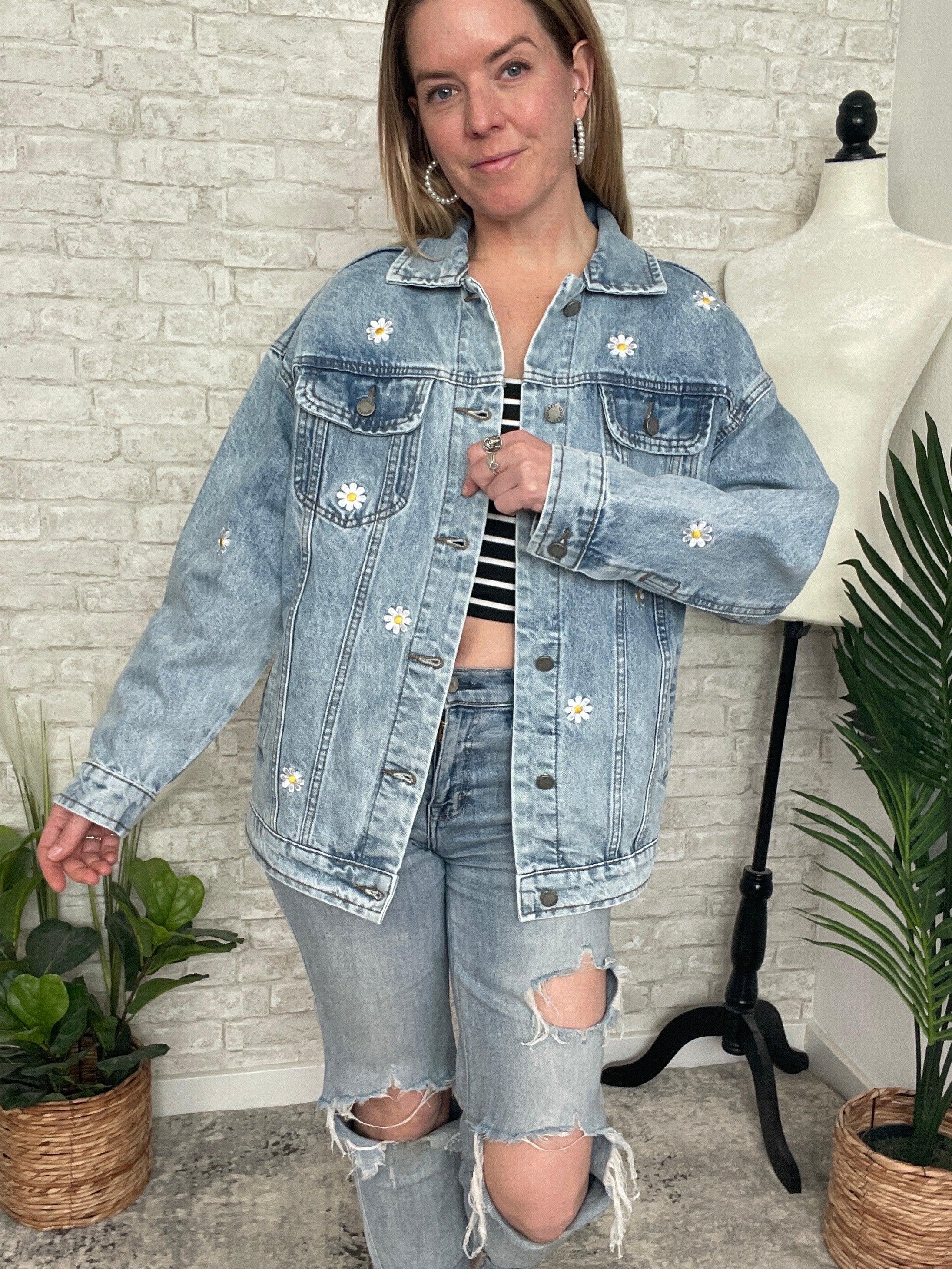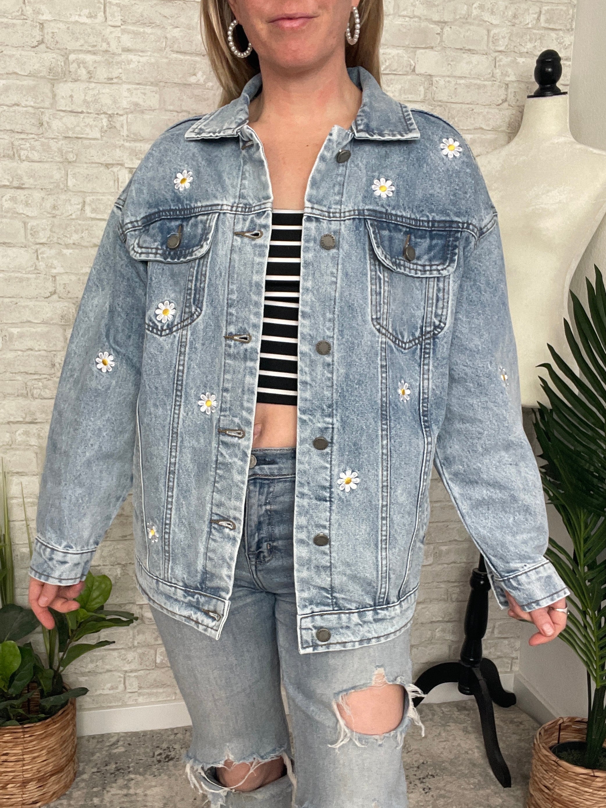 Pick A Daisy Embroidered Jacket Denim