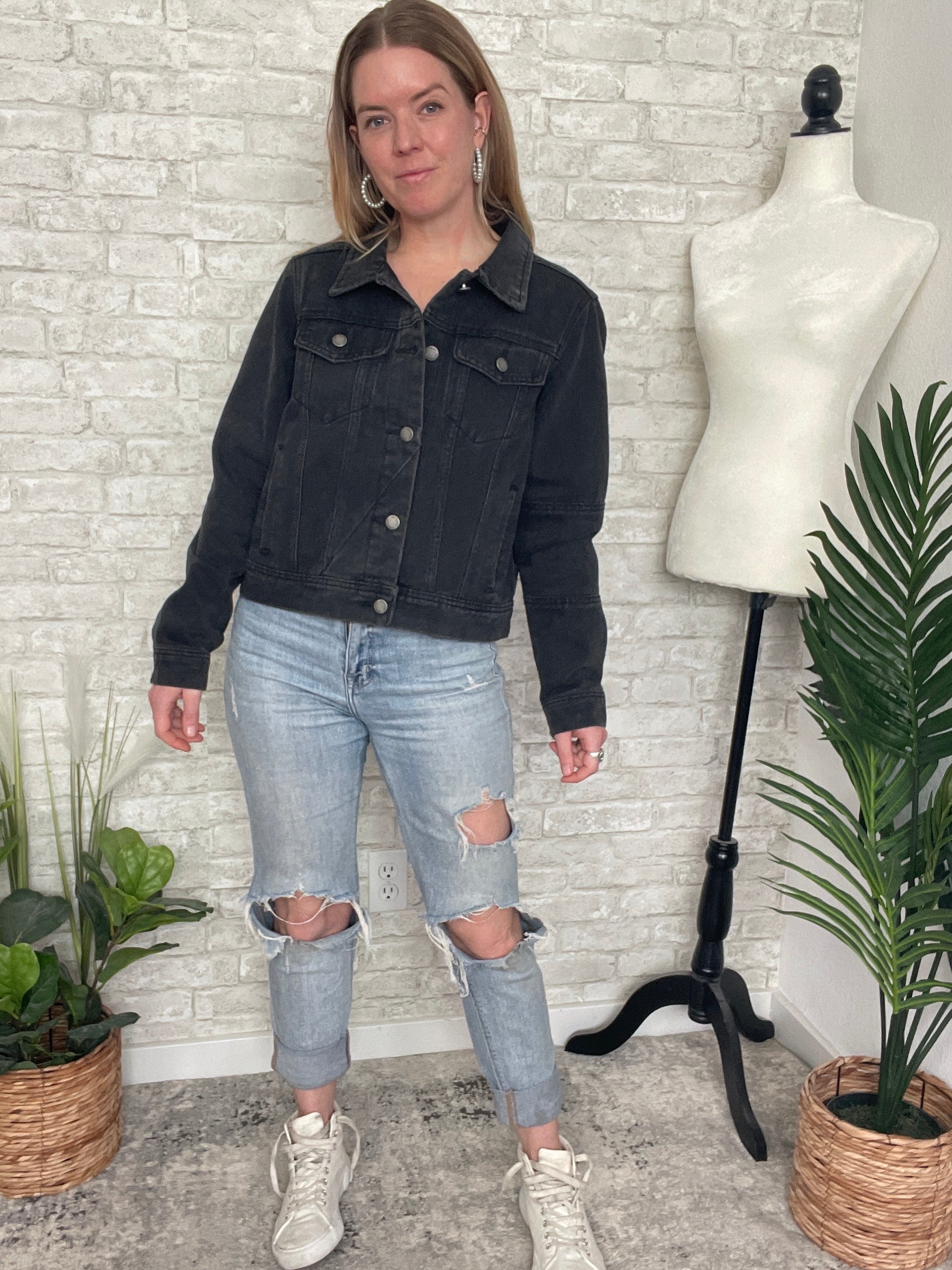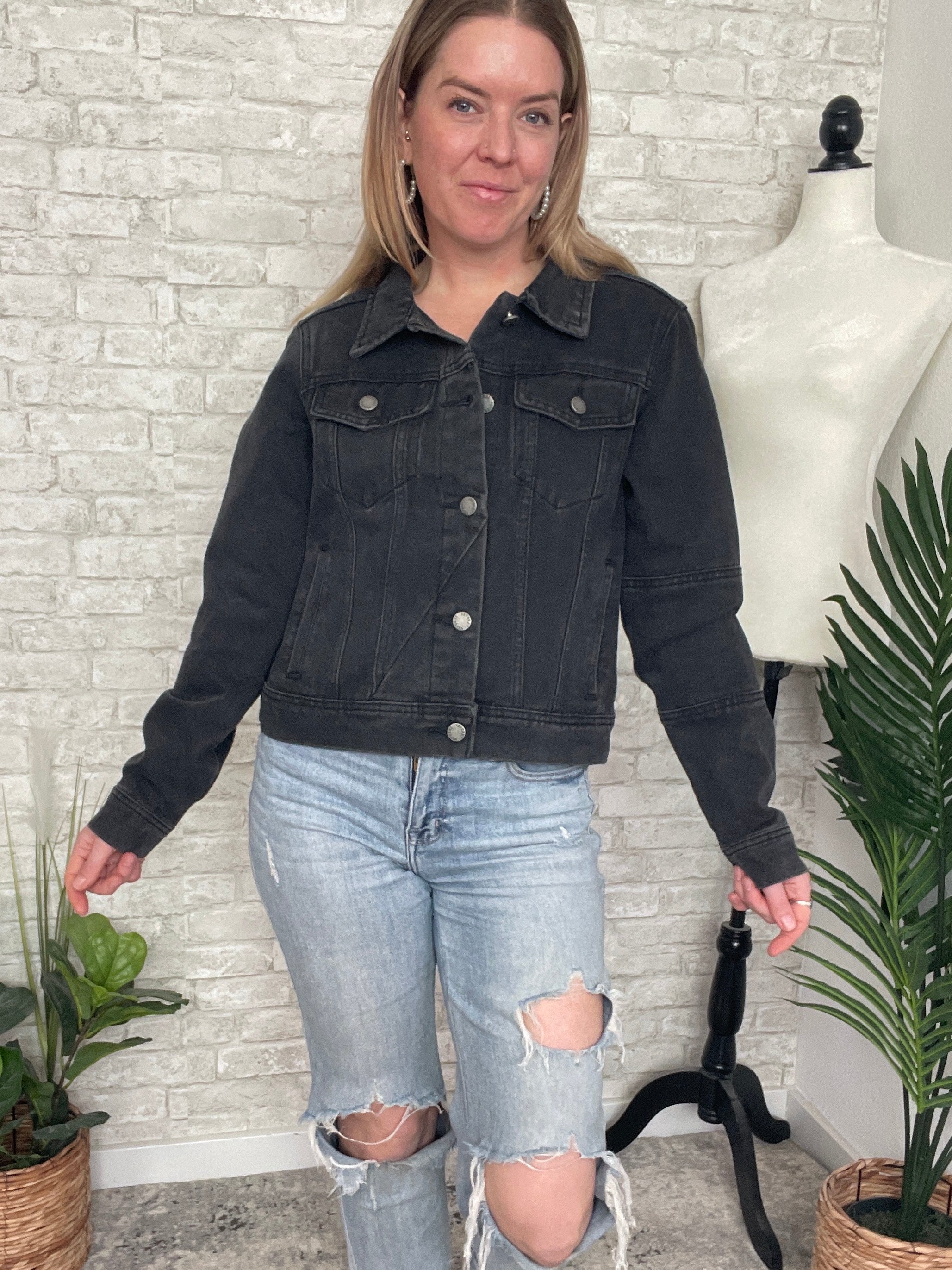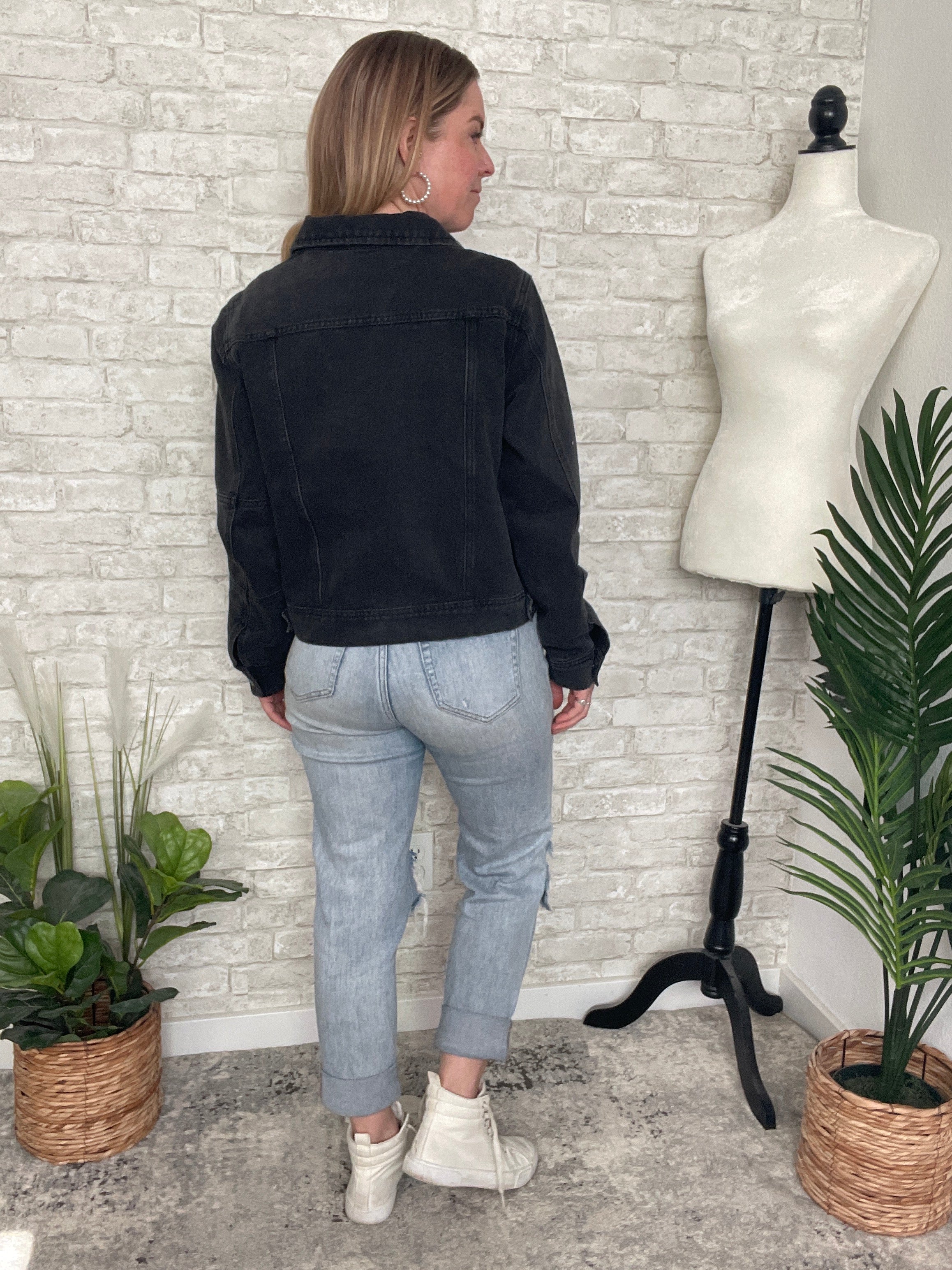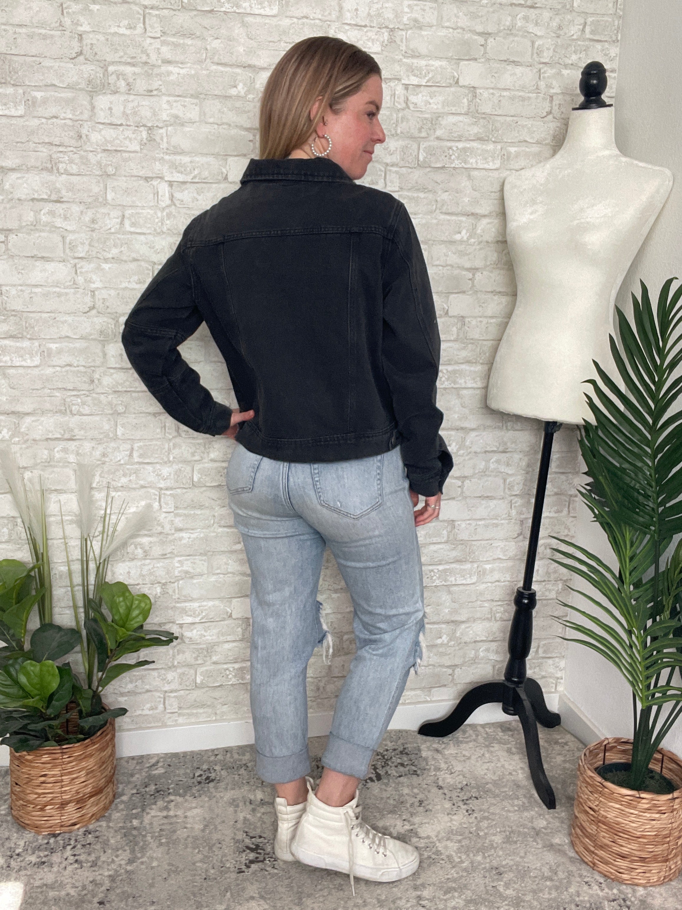 Polly Black Cropped Denim Jacket