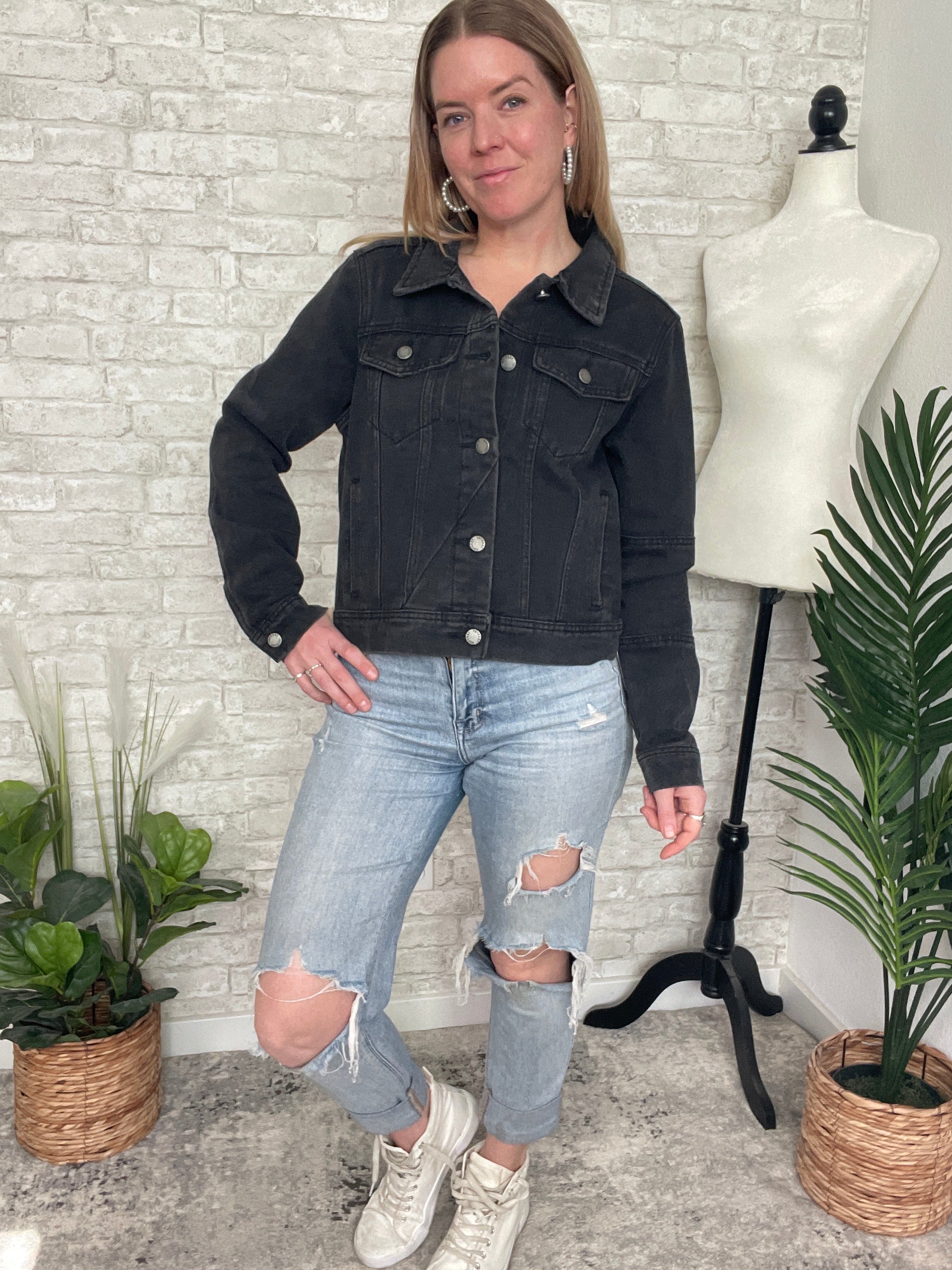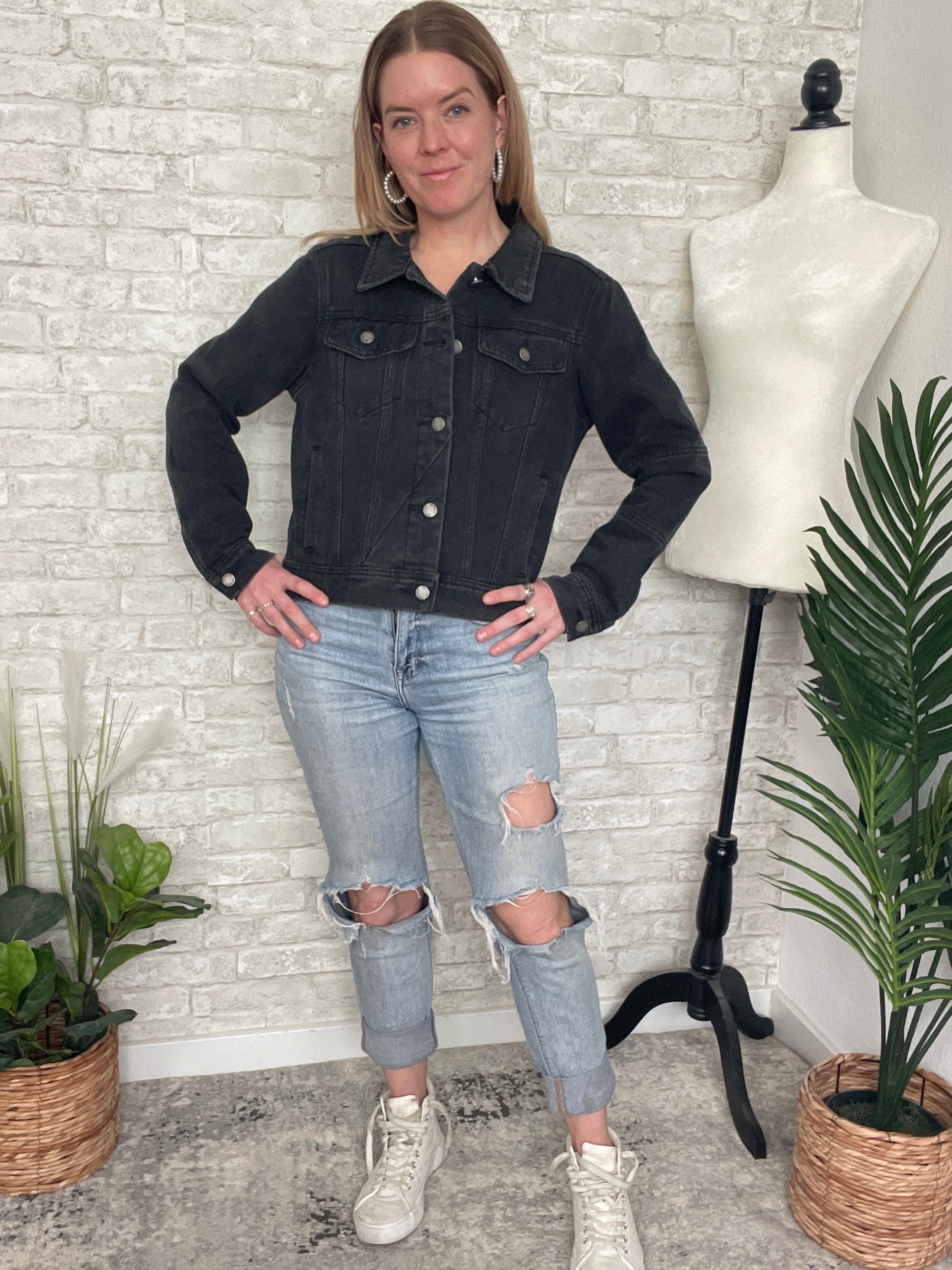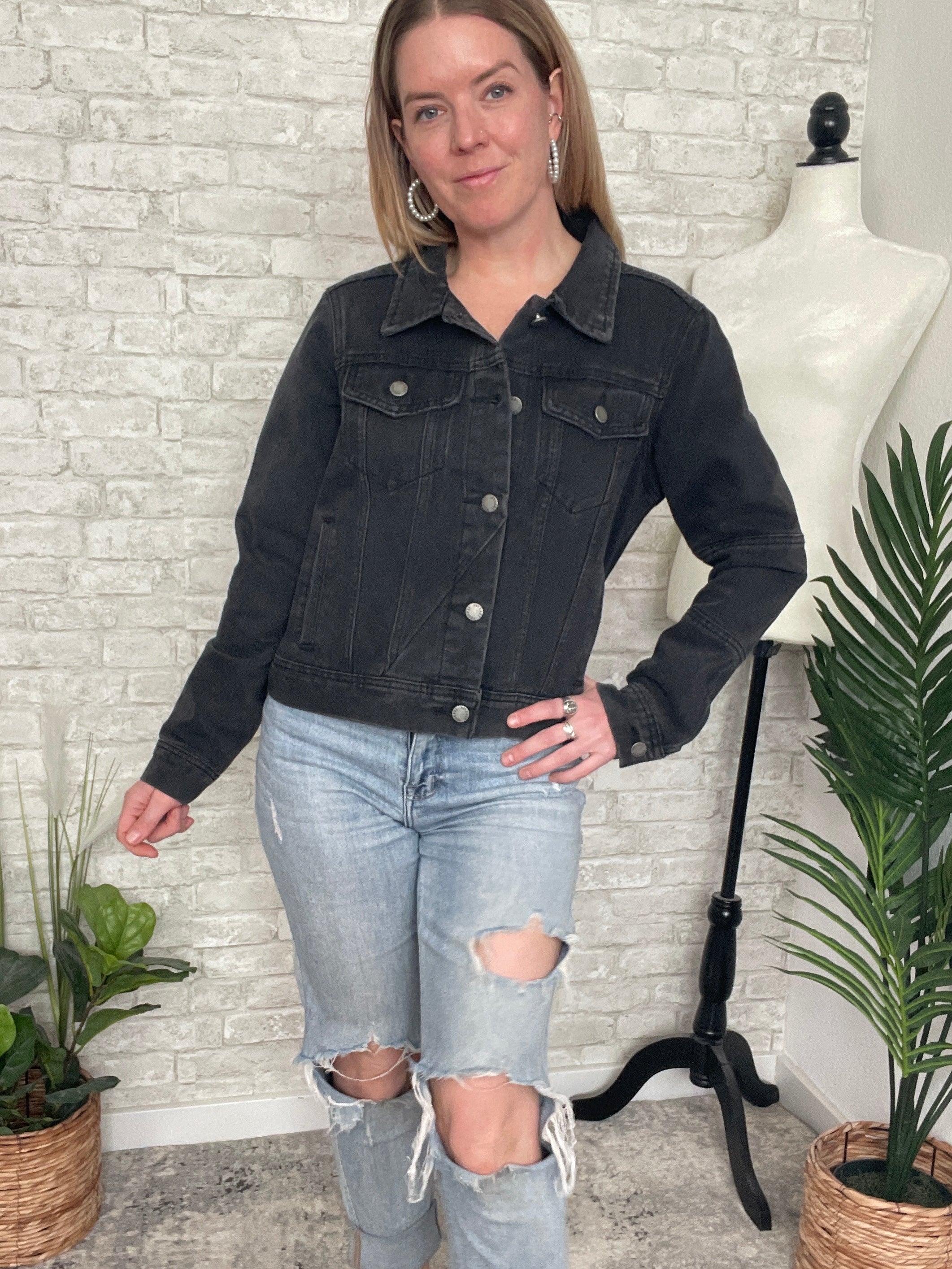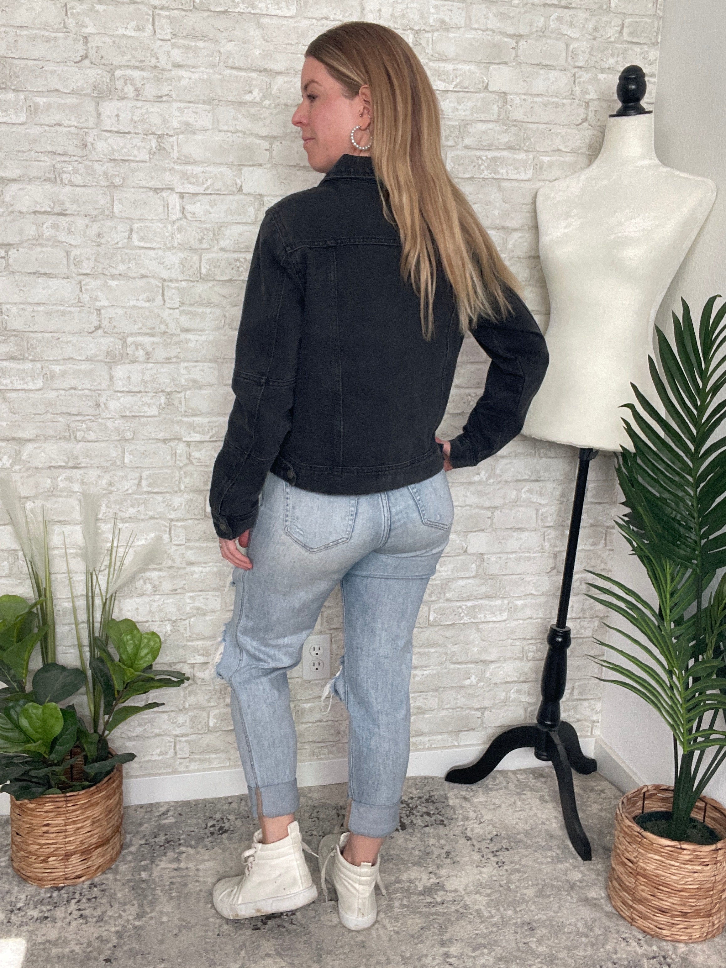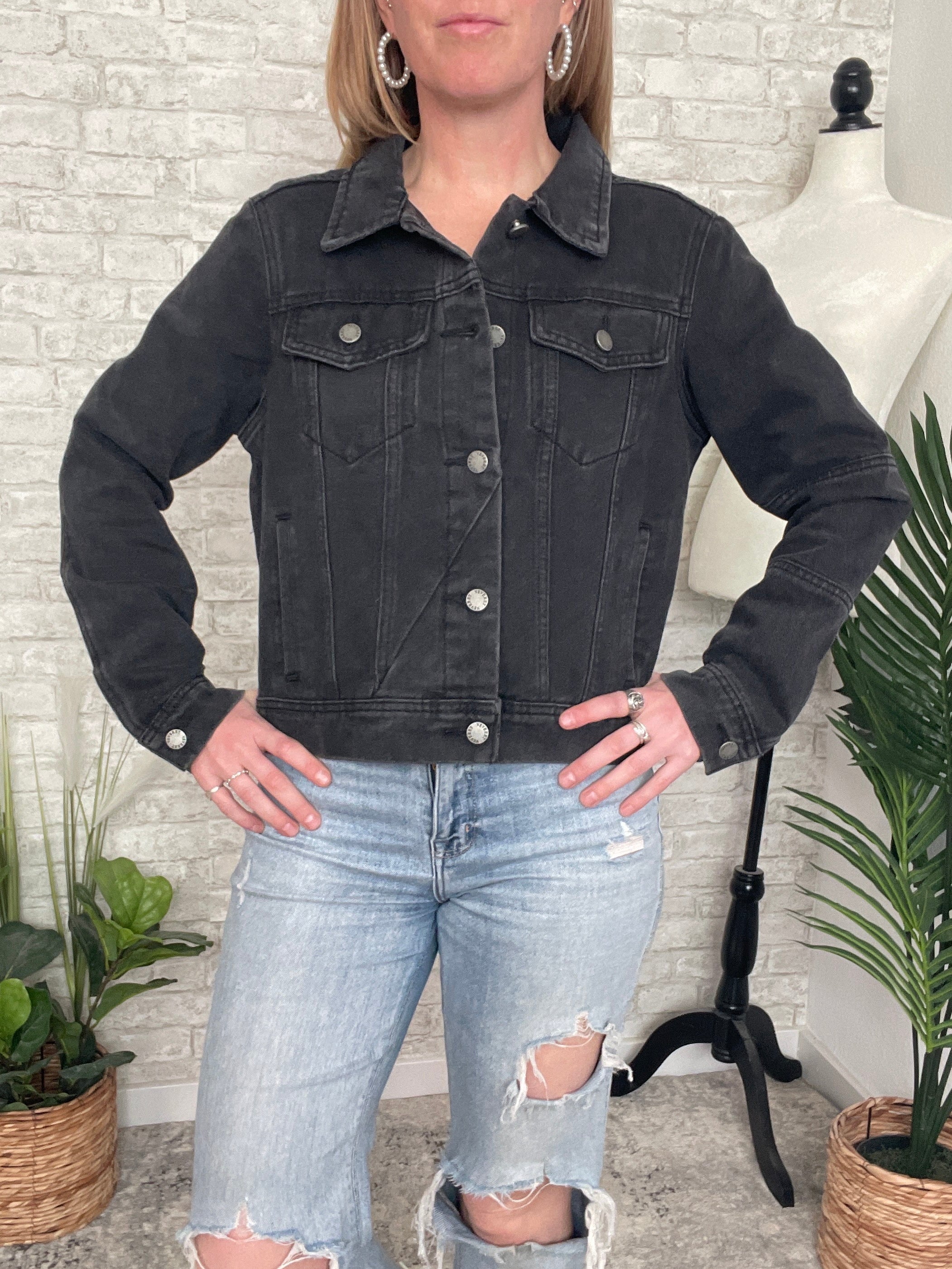 Polly Black Cropped Denim Jacket