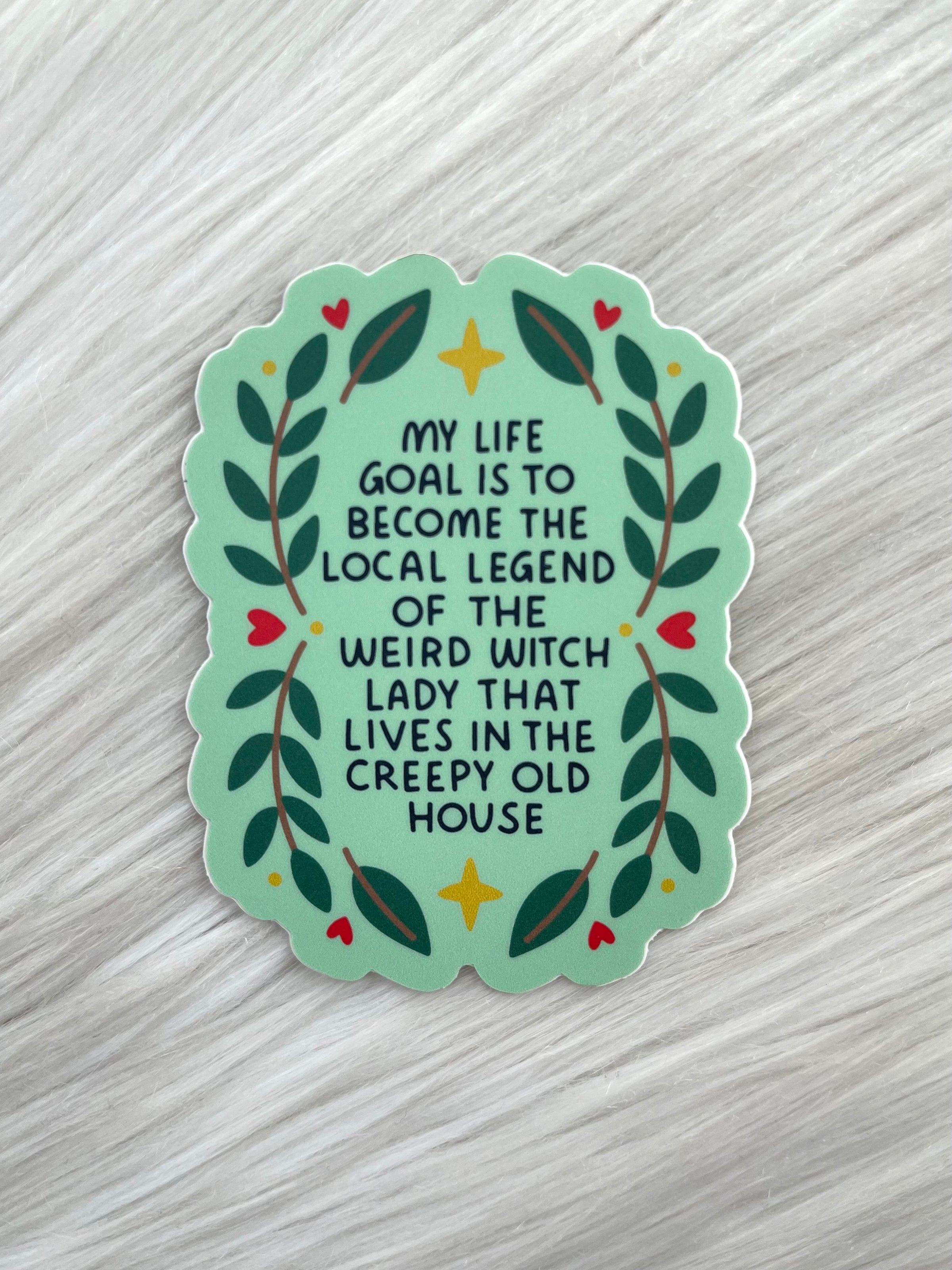 My life goal is to become the local legend of the weird witch lady that lives in the creepy old house - Sticker