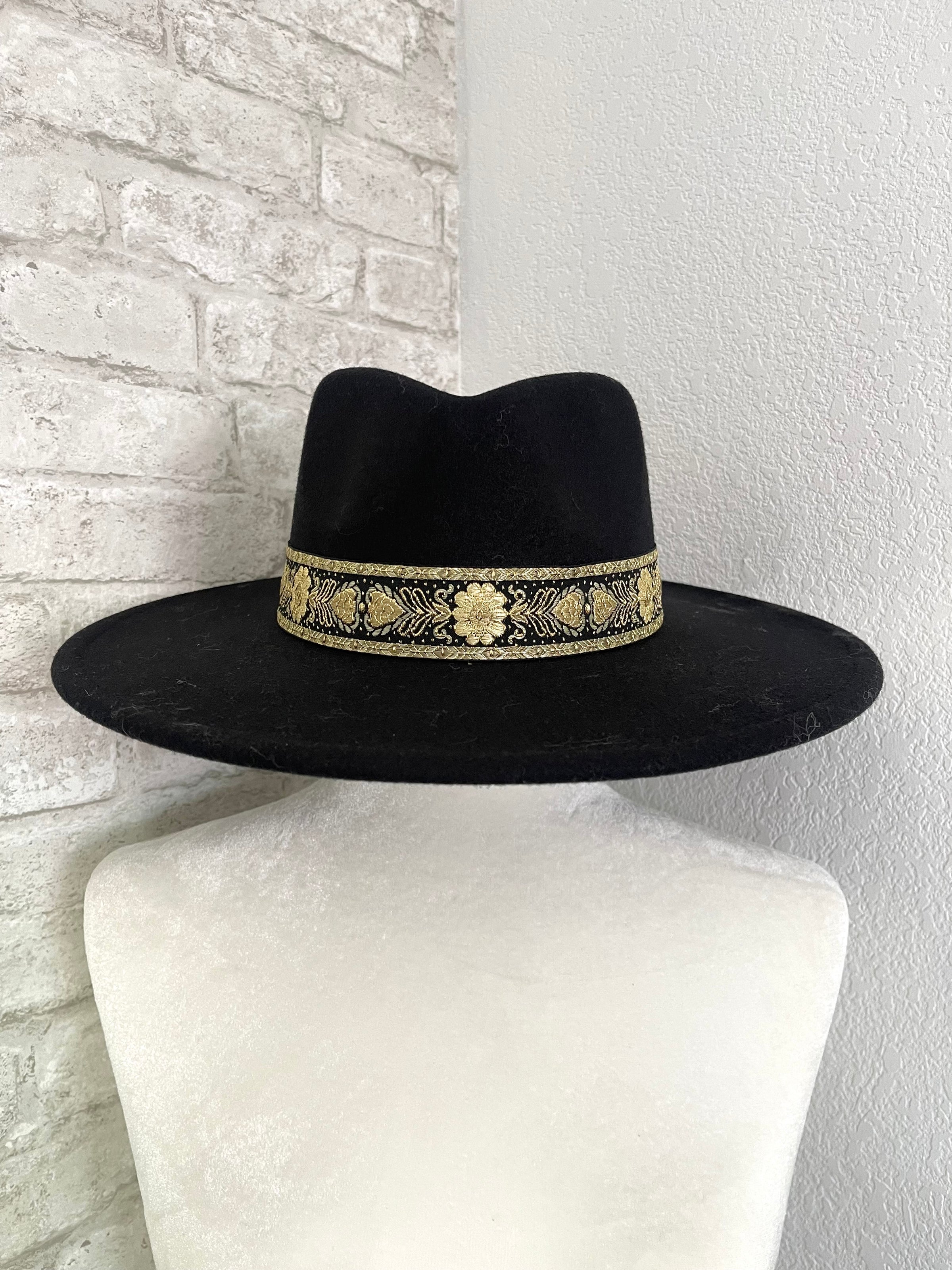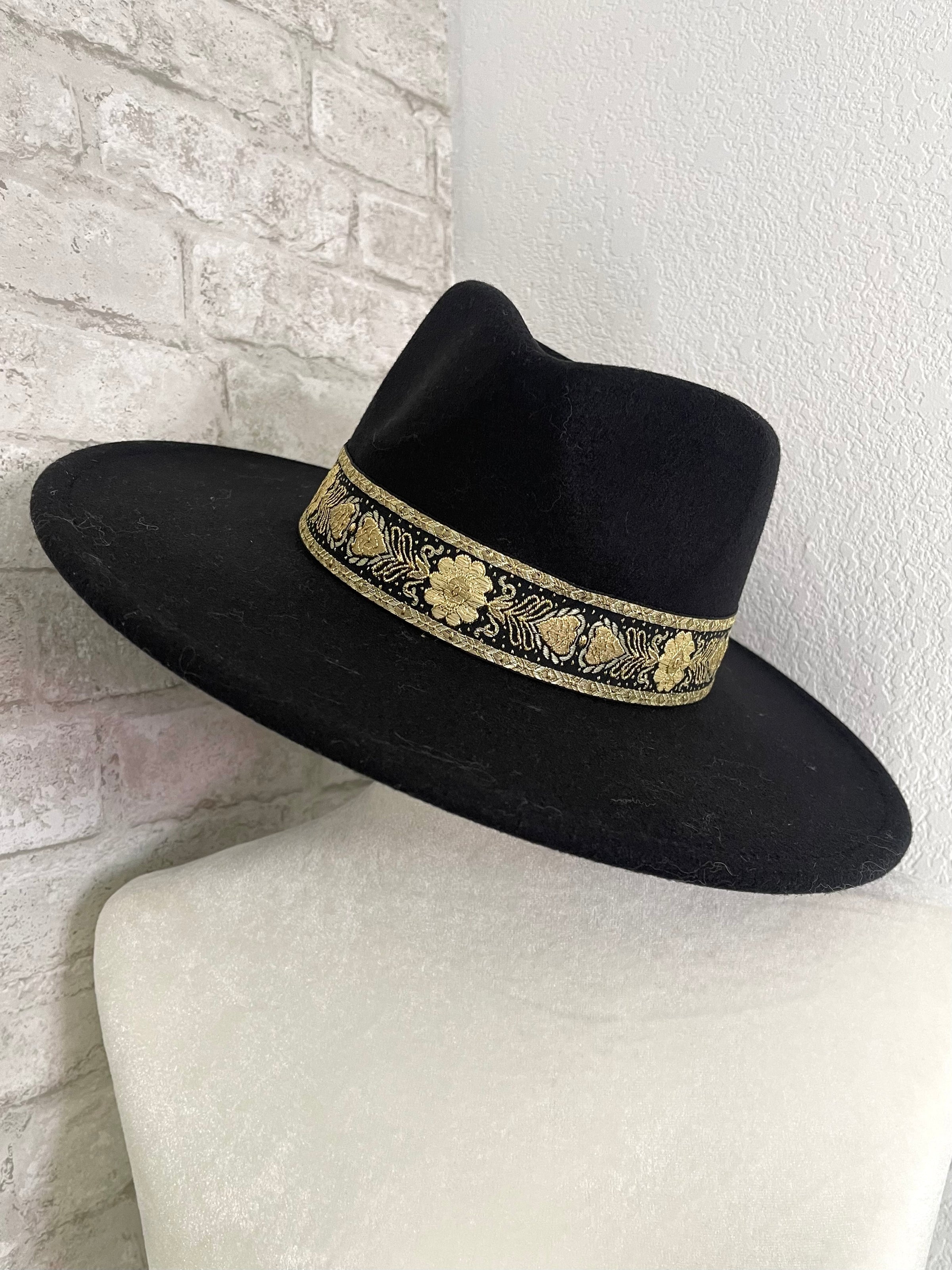Willa 2.0 Gold Flower Band Black Wide Brim